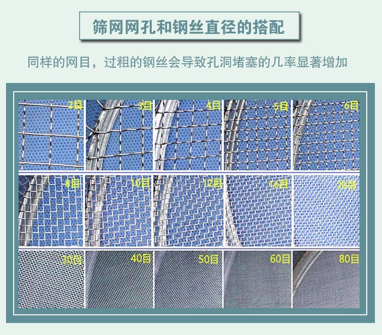 實(shí)踐證明,同樣的網(wǎng)目,過(guò)粗的鋼絲會(huì)導(dǎo)致孔洞堵塞的幾率顯著增加。