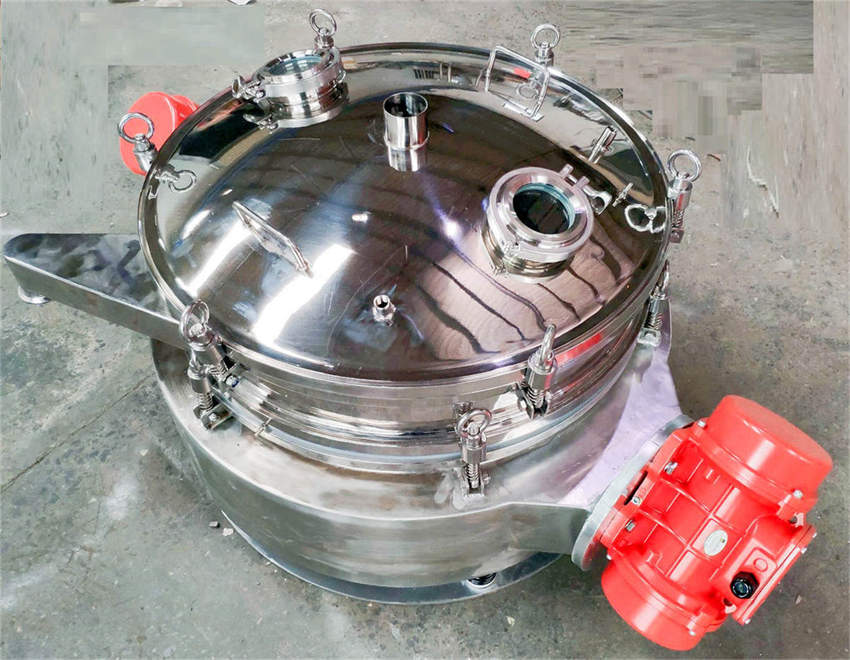 直排篩的作用原理是振動電機軸上下端的兩組偏心塊(不平衡偏心塊),將振動電機的旋轉運動變為水平、垂直、傾斜以及離心作用的多作用力重疊,再將這種作用力傳遞給篩面。改變上下偏心塊的相位角和可以改變激振力的大小和物料的運動軌跡。