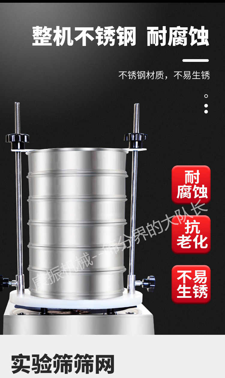標準檢驗篩(試驗篩)又叫標準篩,是具有標準篩孔的篩析工具,又是檢驗其他粒度檢測方法的工具或依據,實驗室篩分所用的篩子是按表中有關標準制成的篩孔大小不一的試驗套篩,即標準篩。標準篩是由直徑15~450mm,高為25~50mm的篩框和篩網組成。篩框不銹鋼板制成,實驗室篩分用套篩是一個篩子套在另一個篩子上疊成的。上層的篩孔大,下層的篩孔小。上部加一個蓋,下部加一個底盤,以減少灰塵和損失。底盤還用來承接通過后一個篩子的細粒級產品。