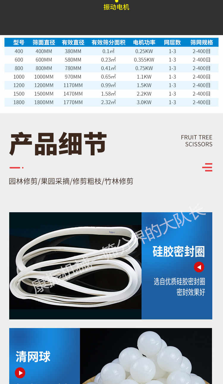 3、去雜質:本設備可對大量物料,除去大小不同的小部分物料,進行快速分離。